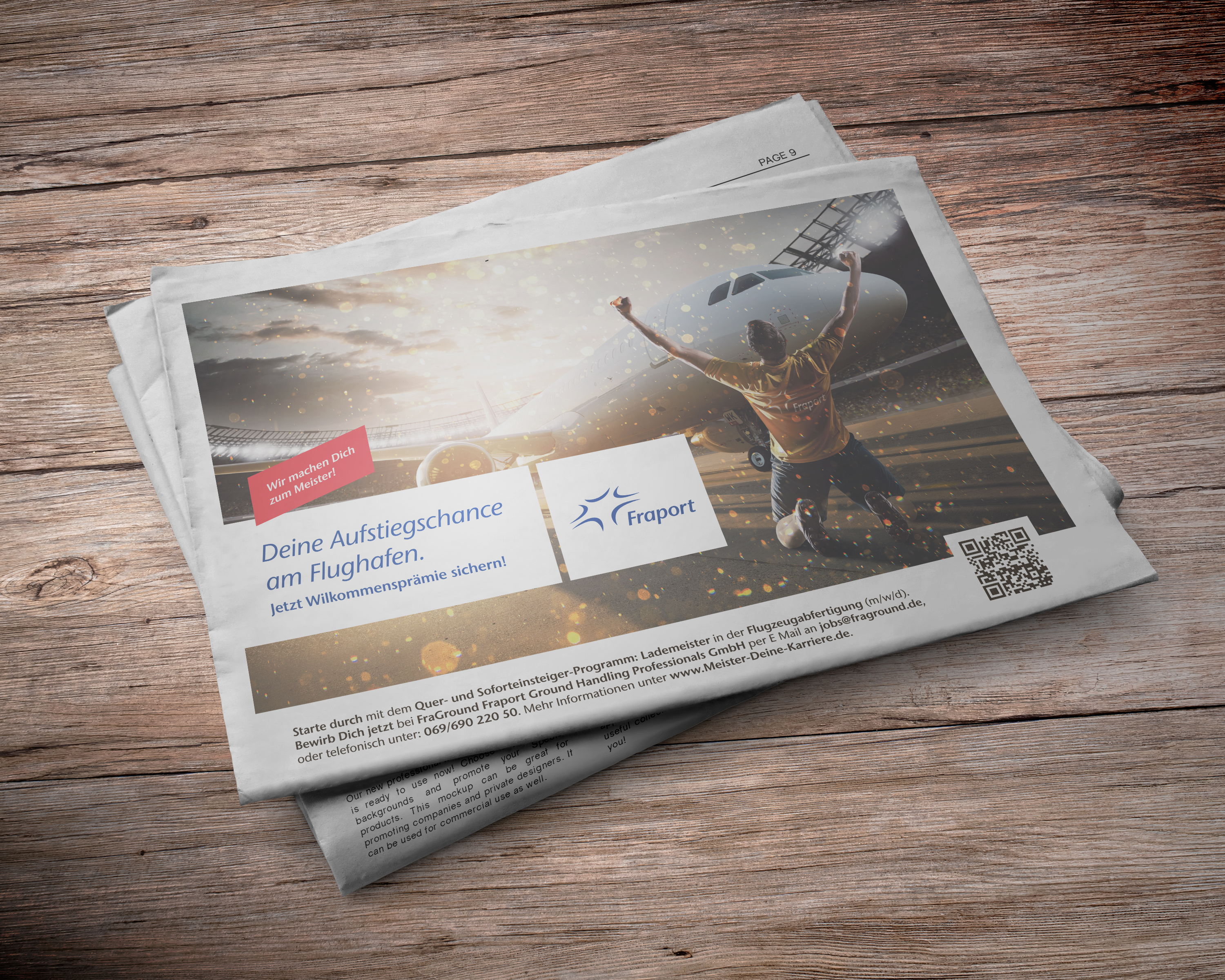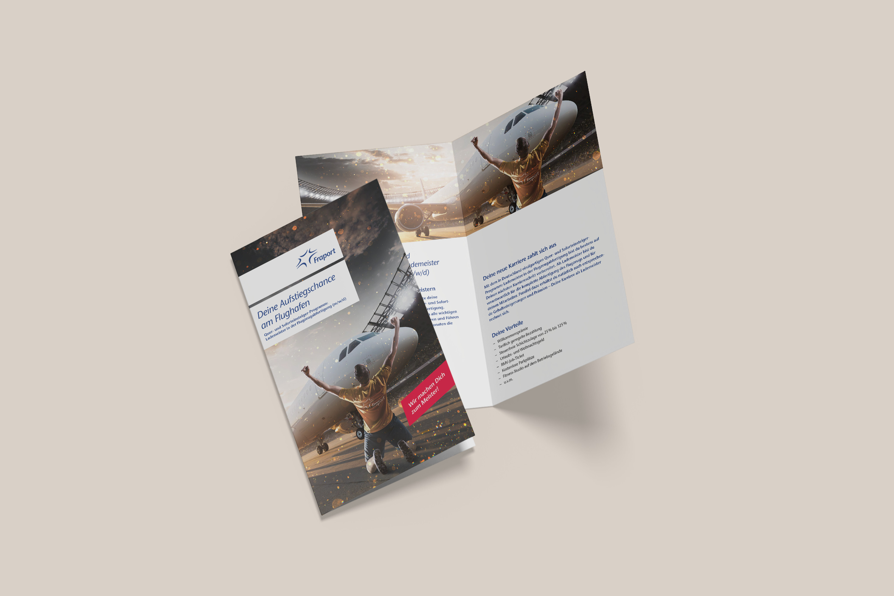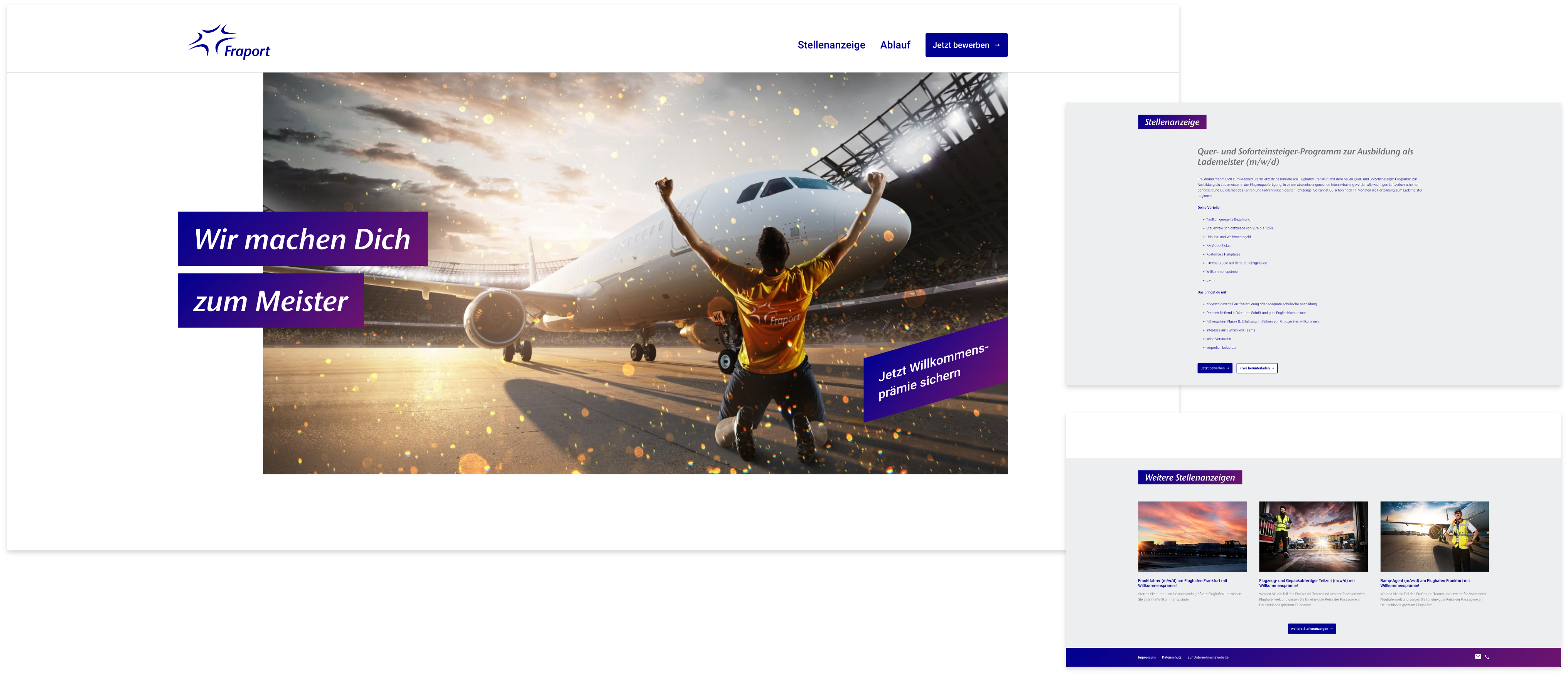 Die FraGround macht Dich schneller zum Lademeister, als üblich. Unsere Kampagnenidee „Meister-Macher“ wurde in stark untereinander vernetzten Medien kommuniziert. Basis war die von uns konzipierte und technisch umgesetzte Landingpage „meister-deine-karriere.de“ mit Anbindung an das Bewerbungsportal der Fraport AG.