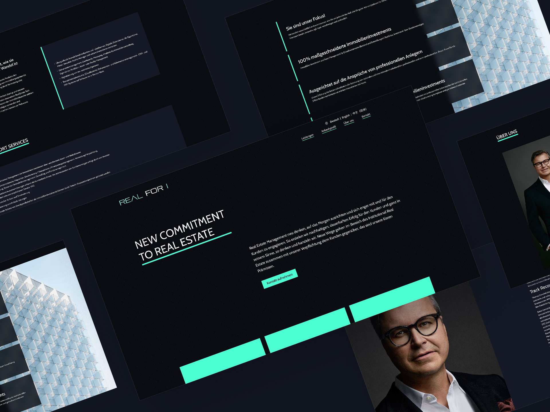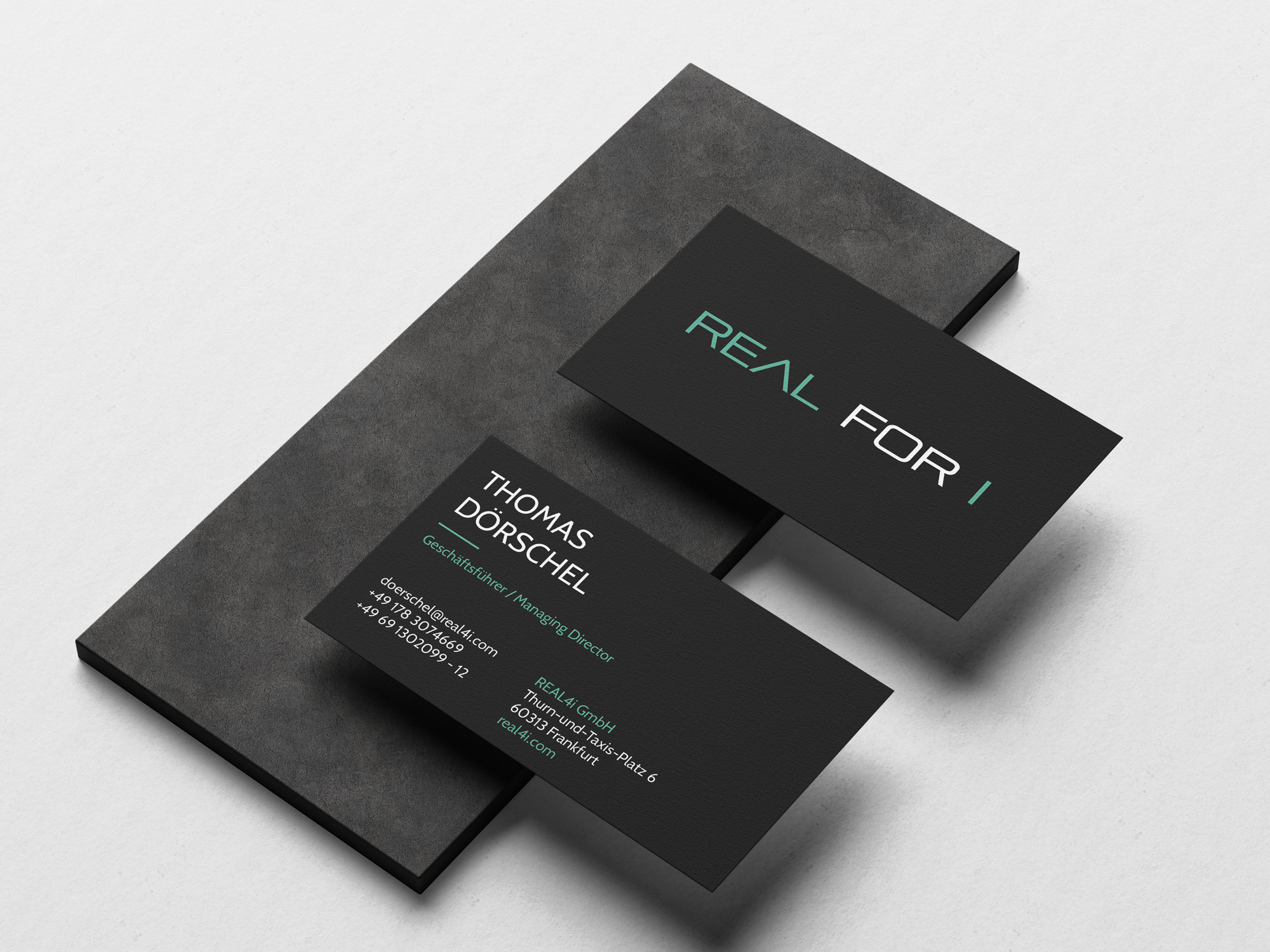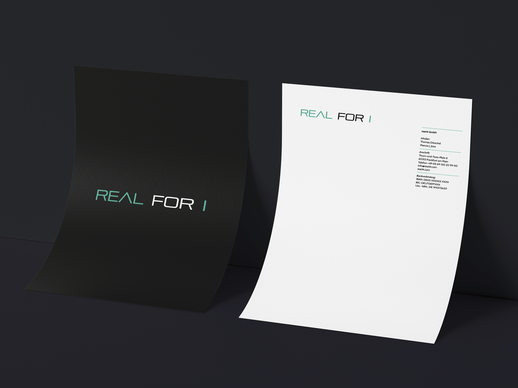 Für REAL4i entwickelten wir die gesamte Markenausstattung, com Logo über die Geschäftsausstattung bis hin zur Website.