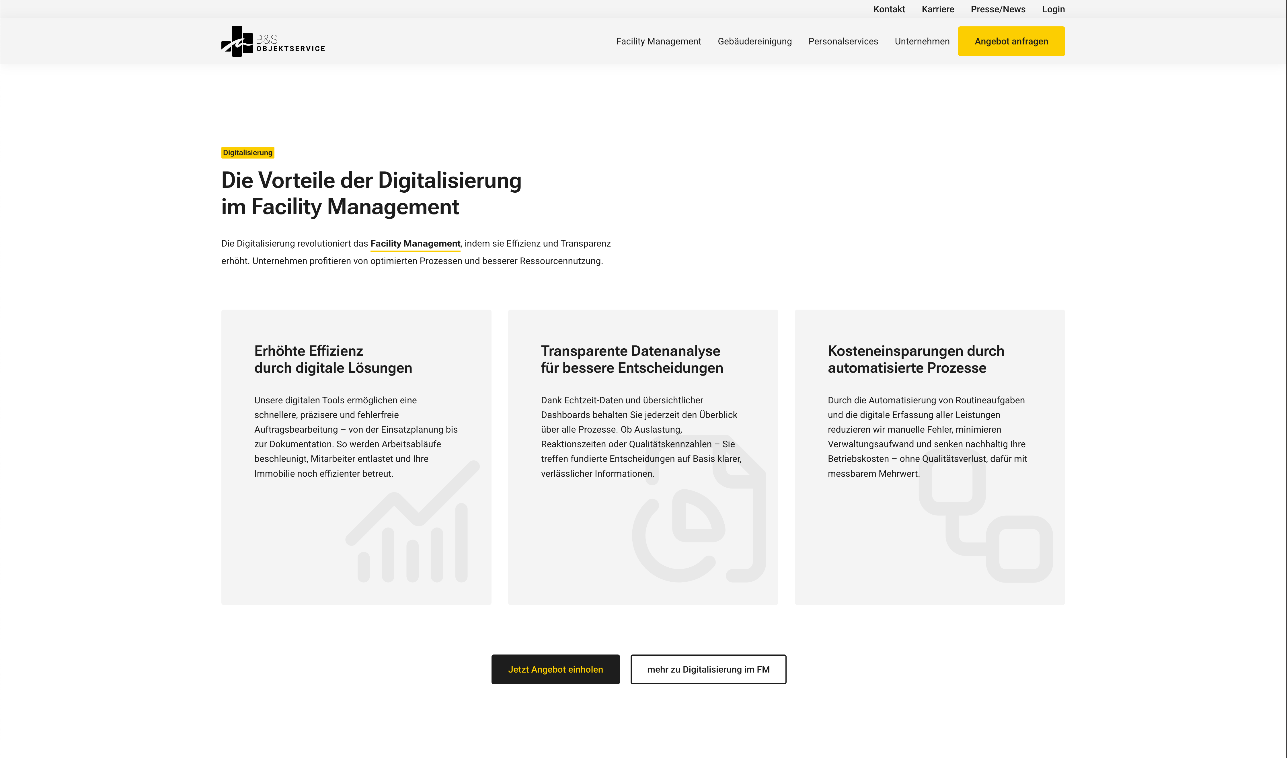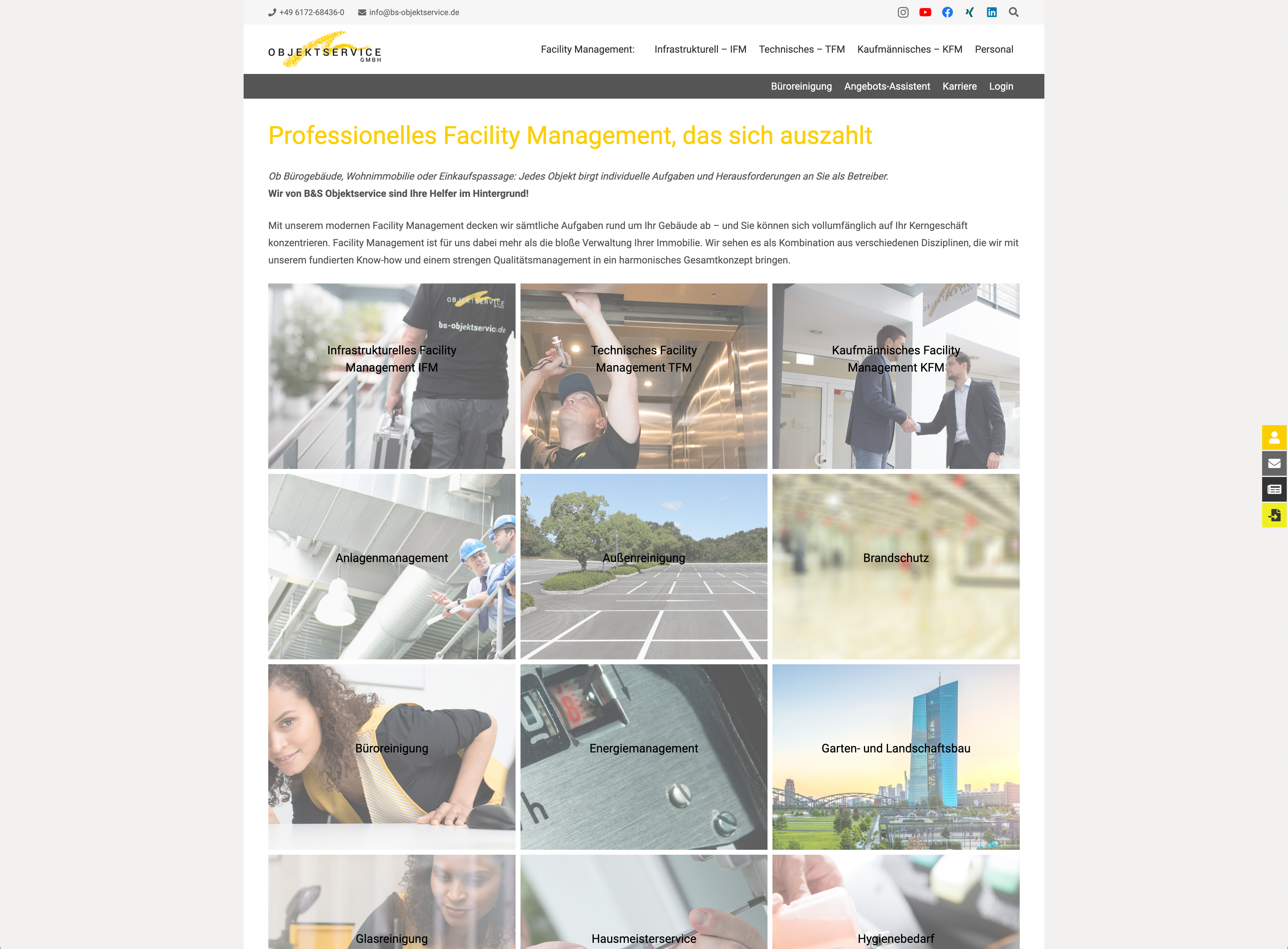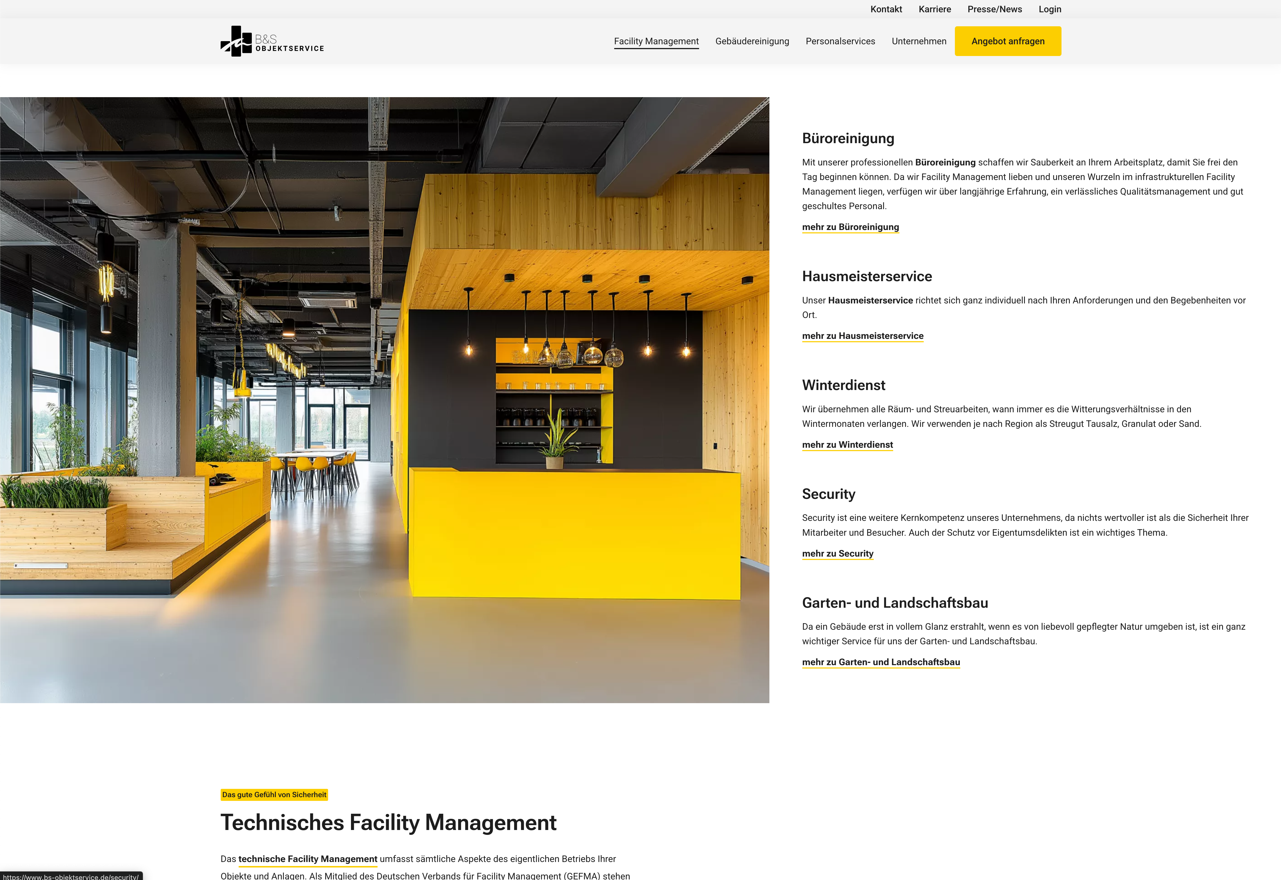 Der erste Impuls für das Projekt war die Überlegung, die bestehende Website von B&S Objektservice zu modernisieren. Schnell wurde jedoch klar: Es ging nicht nur um ein technisches oder gestalterisches Update, sondern um die strategische Neuausrichtung der gesamten Marke. Eine Analyse zeigte, dass eine rein visuelle Anpassung nicht ausreichen würde, um sich klar vom Wettbewerb im hart umkämpften Facility-Management-Markt zu differenzieren.