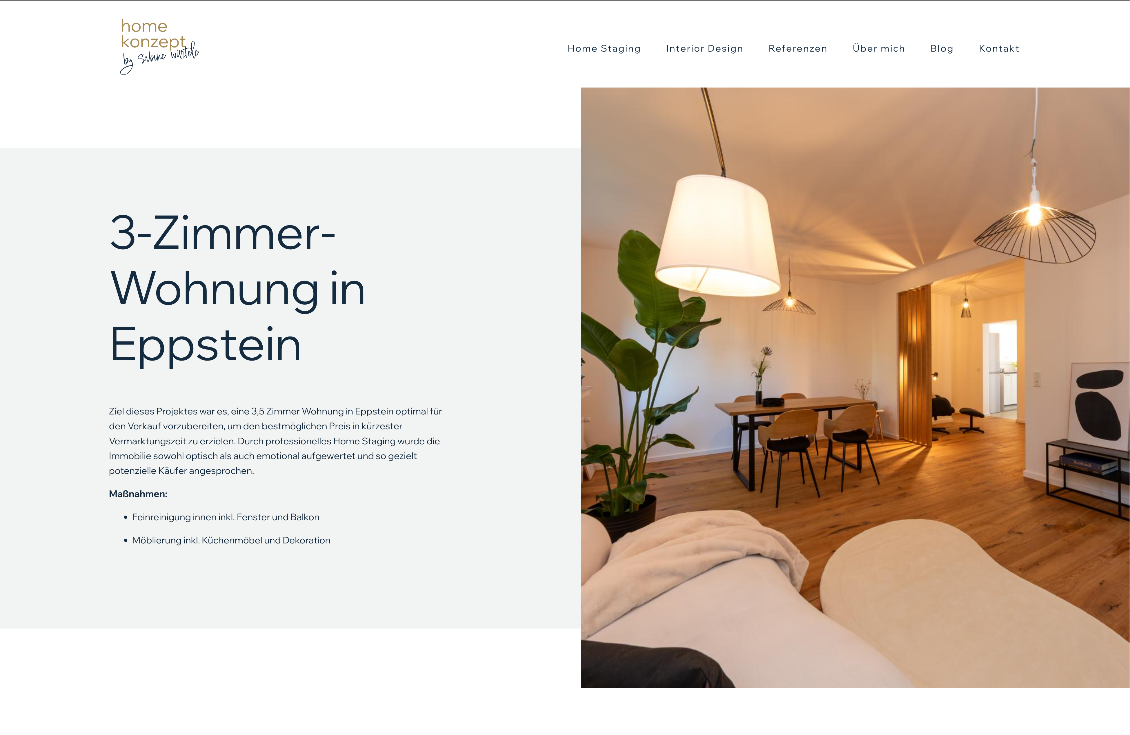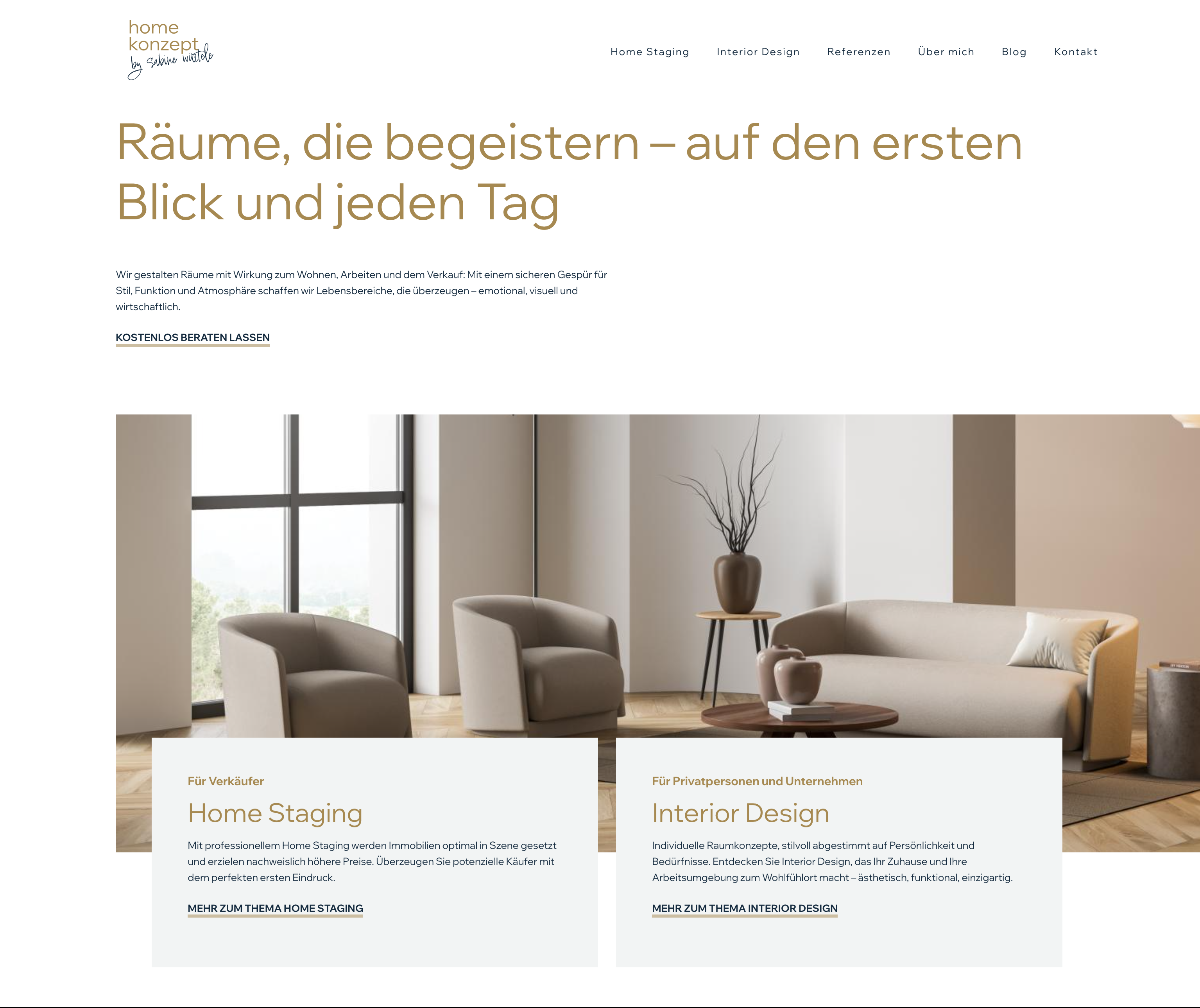 Die Seite wurde inhaltlich komplett neu aufgebaut. Klare Sektionen zu Home Staging und Interior Design führen unterschiedliche Zielgruppen gezielt zu den passenden Inhalten. Die Navigation wurde verschlankt und auf Benutzerfreundlichkeit und schnelle Orientierung ausgerichtet.