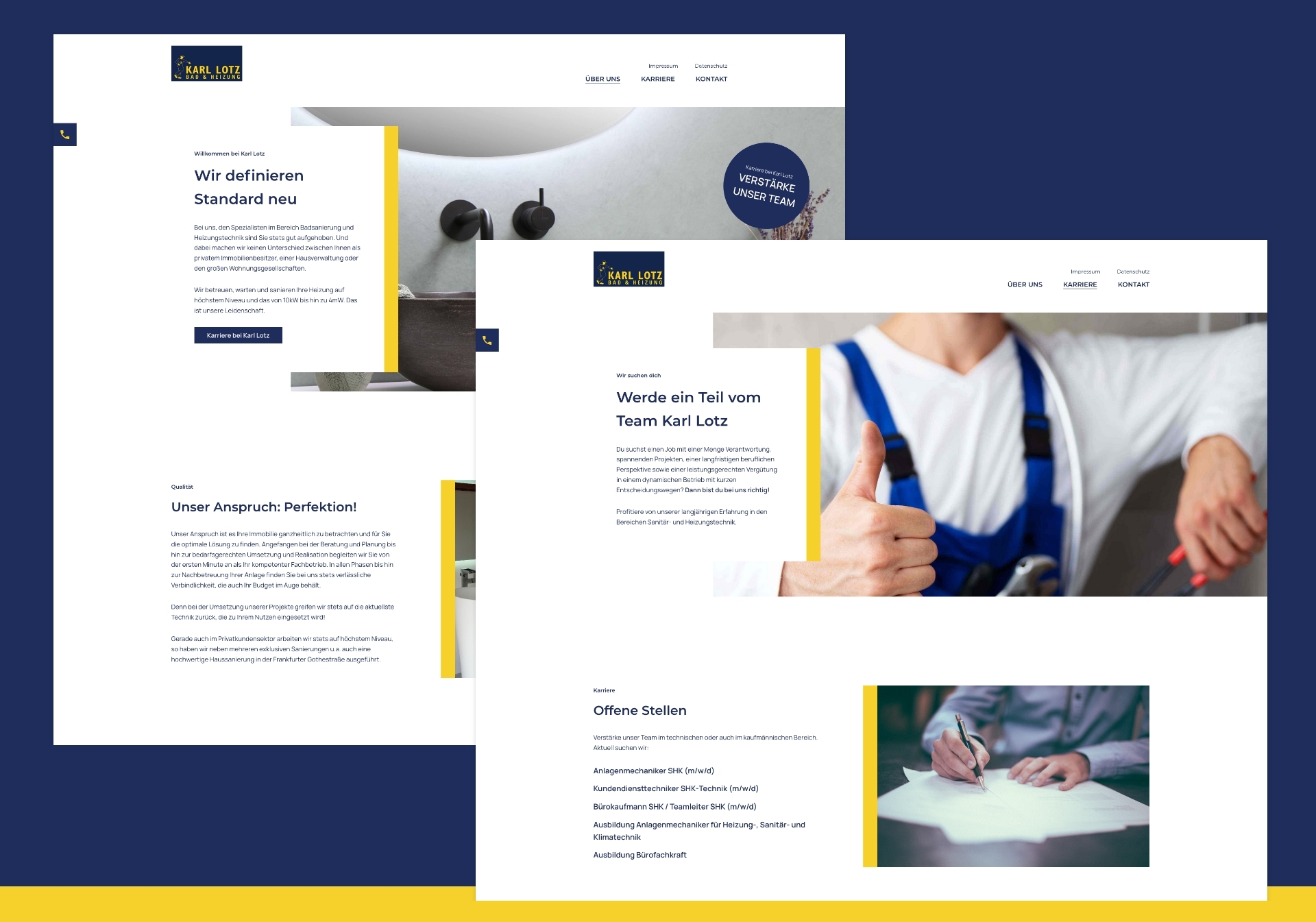 Bei Karl Lotz ging es in erster Linie darum, den Online-Auftritt des Unternehmens zeitgemäß zu gestalten. Die vorherige Website konnte man im besten Fall als "Visitenkarte im Netz" bezeichnen. Unsere Aufgabe war es einen neuen, modernen Auftritt zu gestalten. Besonders wichtig war hierbei das Thema Mitarbeitergewinnung. Die Benefits und die familiäre Atmosphäre des Unternehmens sollten herausgestellt werden.